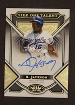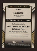 Immerse yourself in the thrilling world of sports card collection with this incredibly sought-after 2023 Topps Tier One Talent Bo Jackson card. This is not just a card, it's a priceless piece of baseball history featuring one of the most iconic players ever to grace the MLB, Bo Jackson. Hailing from the eminent Kansas City Royals, Jackson's prowess and undeniable talent are pristinely captured in this premium card.