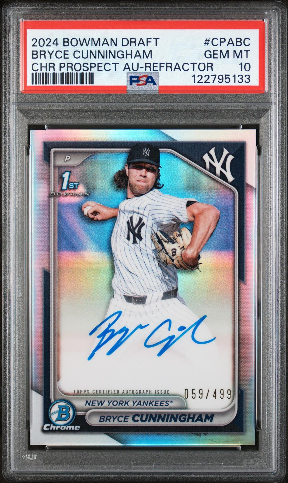 Behold, the crown jewel of sports cards - a Bryce Cunningham baseball card from the 2024 Bowman Draft set. Manufactured by the renowned Topps under the Bowman brand, this card is a treasure for any serious collector.