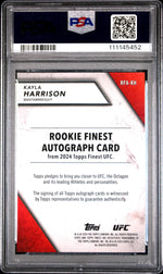 The card features a Rookie Finest insert set, and boasts of a coveted 'Red Shim' parallel that further enhances its appeal. To add to its allure, this card is graced with the autograph of the phenomenal Kayla Harrison herself, making it an iconic piece of UFC history.
