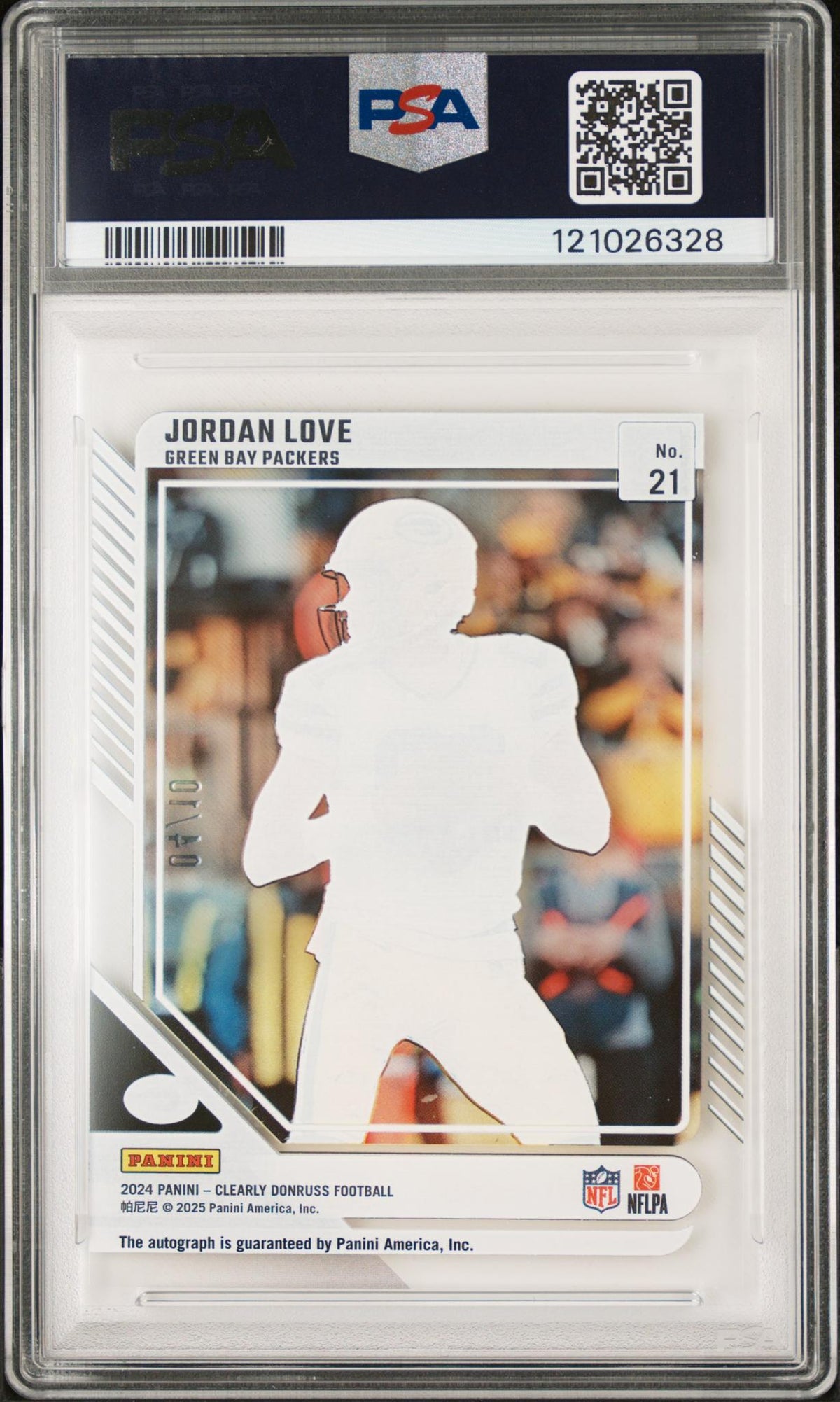 2024 Panini Clearly Donruss Jordan Love #21 Auto /10 PSA 8