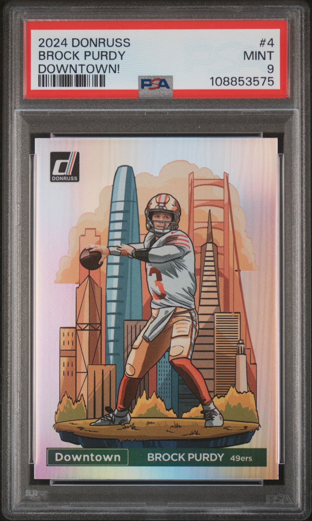 Immerse yourself in the world of sports card collecting with this incredible 2024 Donruss #4 Brock Purdy Downtown card. Brought to you by the renowned manufacturer Panini, this card is a must-have for any serious collector. It features Brock Purdy, an exceptional player from the 49ers, an iconic team in the NFL.