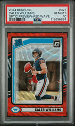 This card is from the exclusive 'Optic Preview-Red Wave' insert set, making it a must-have for both avid collectors and casual fans alike. Adding to its appeal is the fact that it is a parallel card, featuring a mesmerizing Red Wave design that complements Williams' Chicago Bears team colors perfectly.
