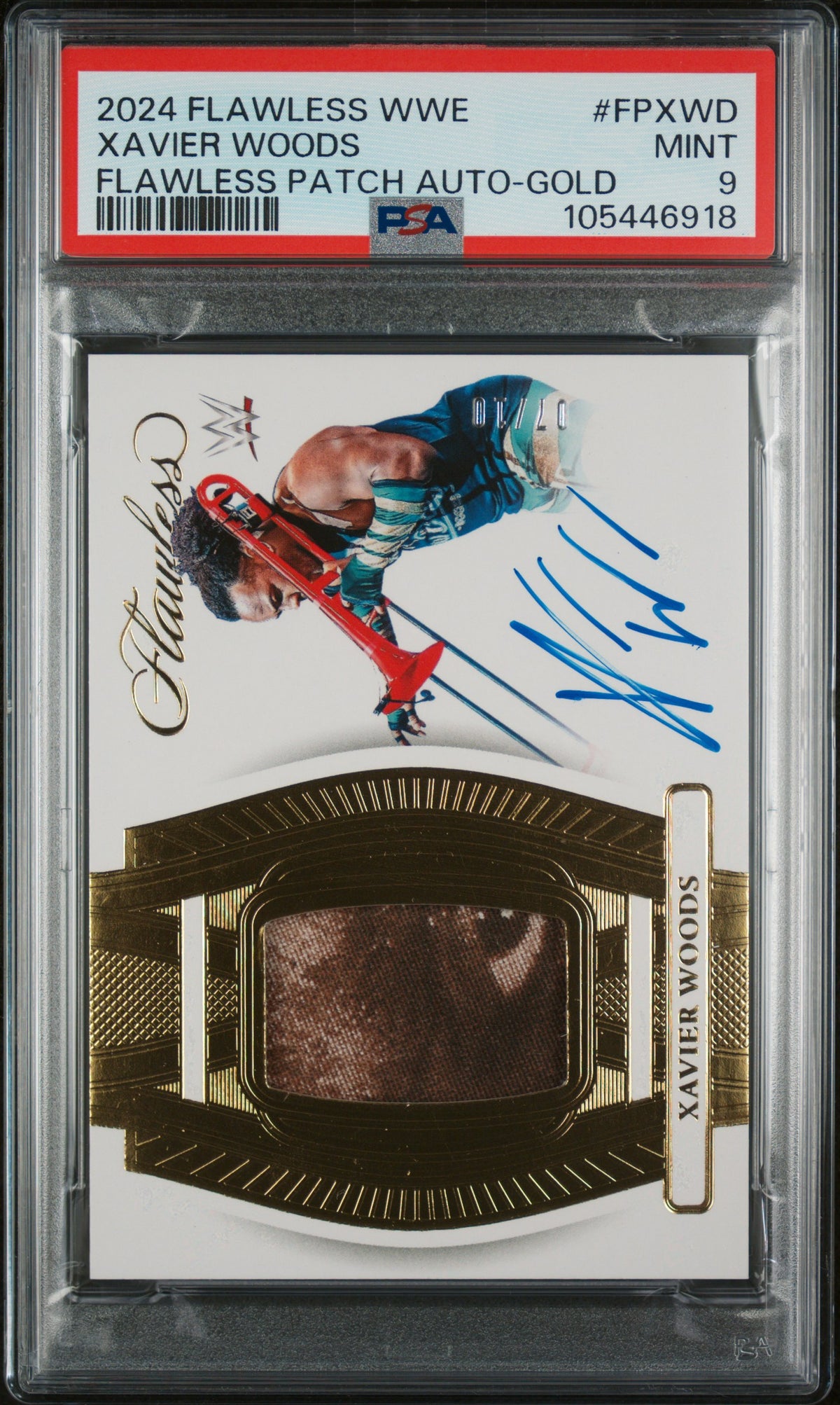To summarise, this 2024 Flawless Xavier Woods Gold Card is a rare gem in the world of WWE collectibles. Its gold parallel design, autograph from Xavier Woods, included memorabilia patch, and limited edition status all contribute to making it a truly exceptional piece. This card would make a perfect centerpiece in any collection or an outstanding gift for a WWE fan. Don't miss out on owning a piece of WWE history!
