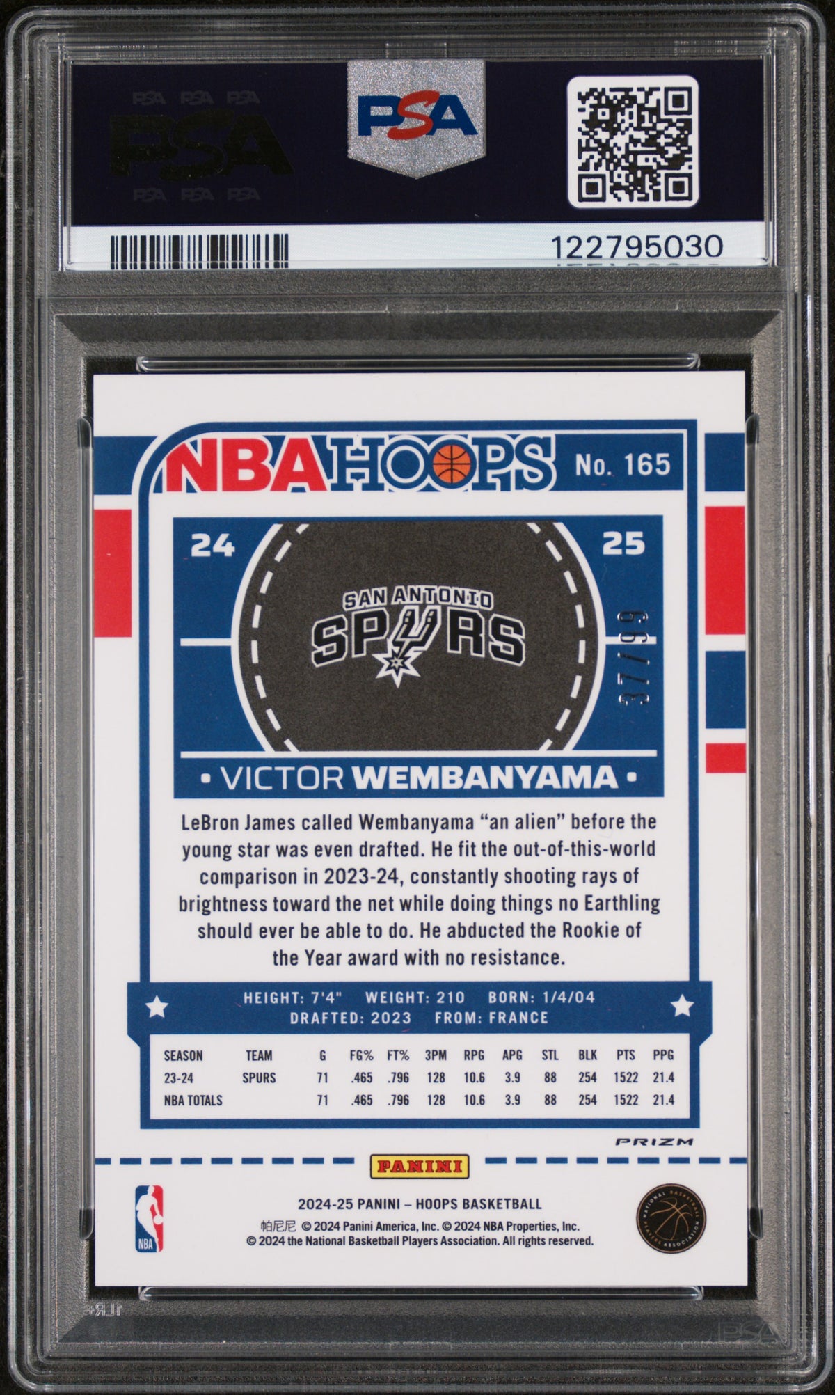 This Victor Wembanyama rookie card is not just a piece of cardstock, but a slice of sports history encapsulated. The Panini NBA Hoops 2024 edition captures the essence of the basketball court and the electrifying energy of the players. Whether you're a seasoned collector or a newbie in the world of sports collectibles, this card is a valuable addition, injecting a wave of blue brilliance into your collection.
