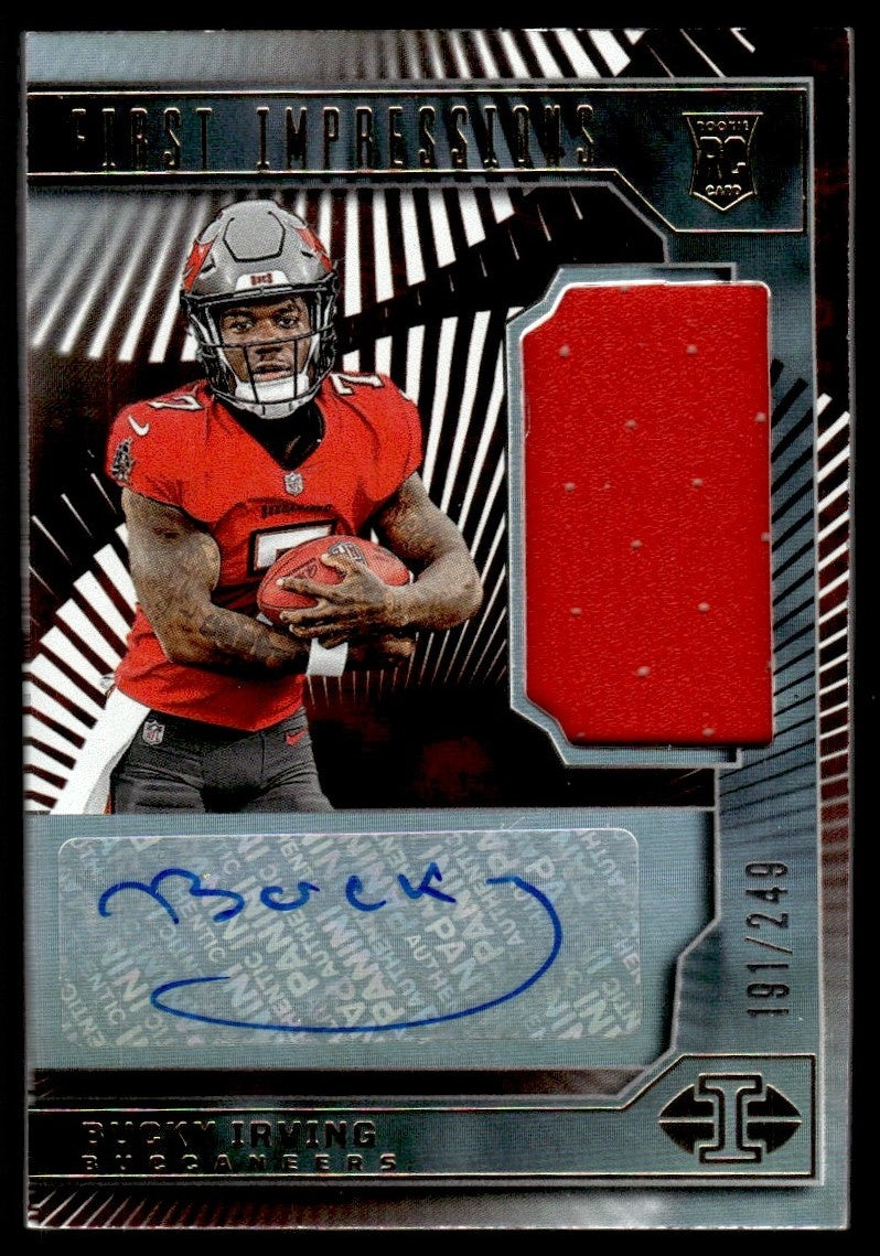 Boasting the First Impressions insert, this card is a tribute to Bucky Irving's rookie year in the NFL, marking the inception of what is set to be a promising career. It carries not just the essence of this talented player but also the prestige of the Panini Illusions brand, renowned for their high-quality and aesthetically pleasing sports cards.