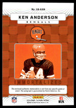 Behold this exceptional sports card featuring the NFL legend, Ken Anderson. A standout product from Panini's esteemed 'Illusions' brand, this card is a part of the exclusive 'Immortalized' set, paying homage to the greatest players in football history. The card, manufactured in 2024, carries the unique card number IJA-KAN, ensuring its authenticity and exclusivity.