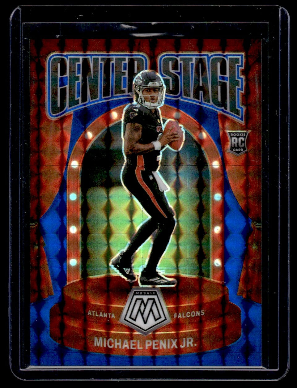 Indulge in the thrill of collecting with this exquisite 2024 Panini Prizm 10 Michael Penix Jr. sports card! As part of the coveted 'Center Stage' insert set, this card is a rare find and a must-have addition to any NFL fan's collection.