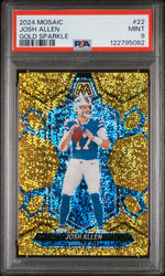 Unveil the magic of sports with this captivating 2024 Panini Mosaic Football card featuring the exceptional talent, Josh Allen of the Buffalo Bills! This is not just a card, but a piece of sports history, showcasing the prowess and skill of one of NFL's leading quarterbacks.