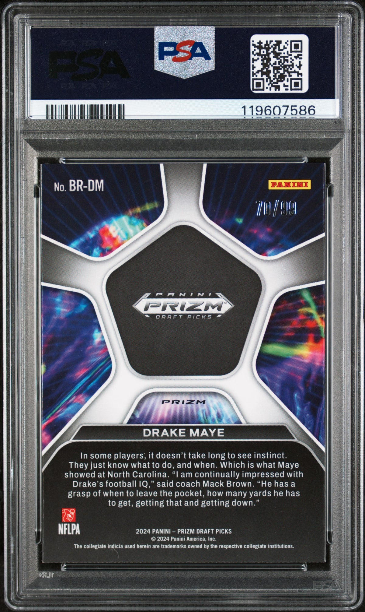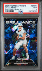 2024 Panini Prizm Draft Picks Brilliance Blue Ice Drake Maye #BR-DM RC /99 PSA 9
