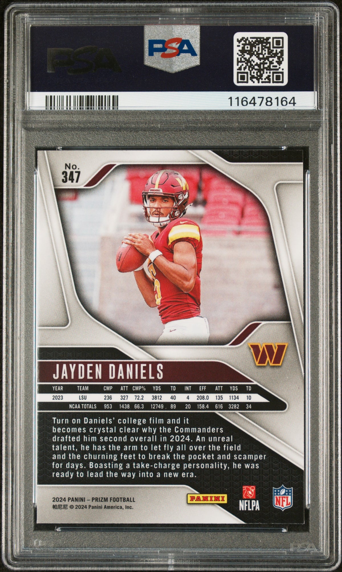 In the world of sports card collecting, where rarity and condition are king, this magnificent 2024 Prizm #347 Jayden Daniels card is a crown jewel. Don't miss your chance to own this spectacular piece of sports memorabilia!