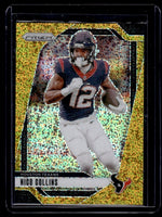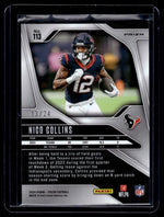 The card is a unique Gold Parallel variation, setting it apart from standard releases. Its serial numbering is a testament to its rarity, being one of just 24 ever produced. The illustrious '2024 Prizm 113 Nico Collins Gold 13/24' is indeed a trophy for any avid collector or a dedicated Houston Texans fan.