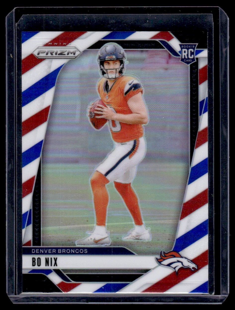 Perfect for any football lover, card collector, or Denver Broncos fan, this card is a must-have. Whether you're looking to complete your Panini Prizm set, find an exciting new piece for your collection, or simply appreciate the art of sports cards, this Bo Nix rookie card ticks all the boxes. Add it to your collection today and own a piece of NFL history.