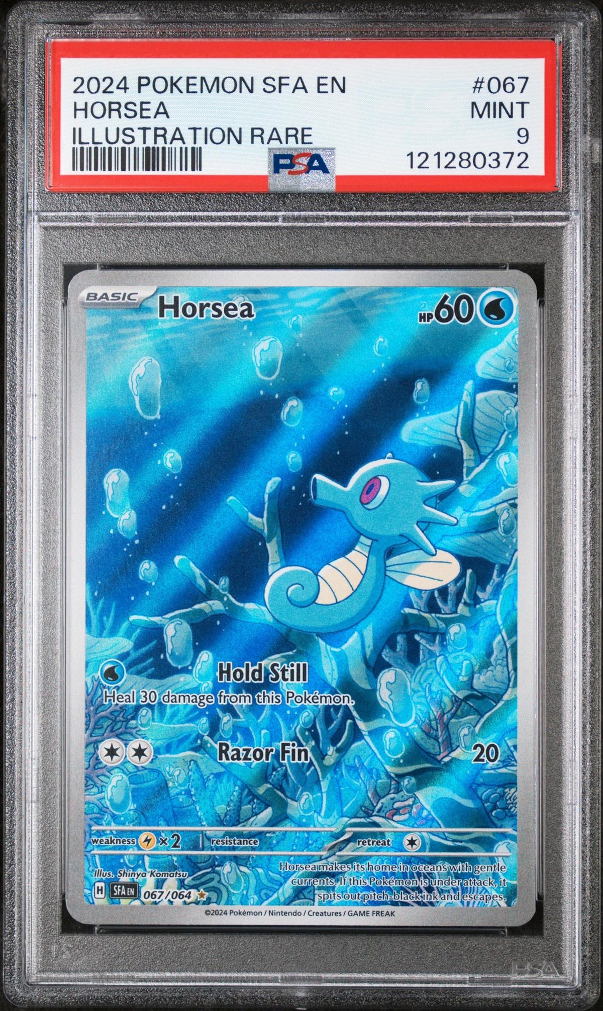 In summary, this 2024 SFA Horsea card is a true gem, merging the enchanting world of Pokemon with the thrill of card collection. Its mint condition, professional grading, and rarity make it a remarkable find. Invest in this card today and add a dash of rarity and charm to your collection. Happy collecting!