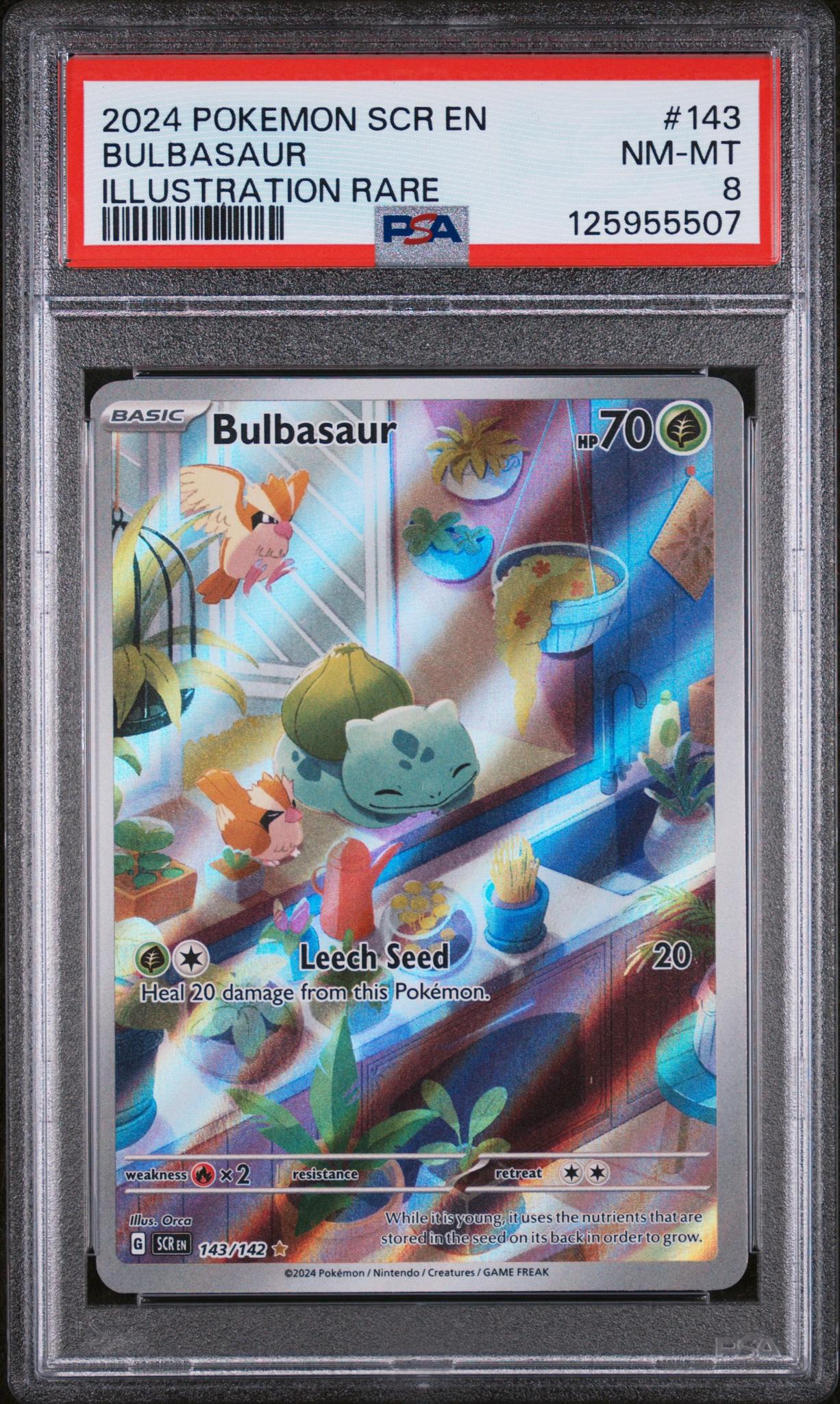 Feast your eyes on this stunning collectible gem - the 2024 SCR #143 Bulbasaur from the renowned manufacturer, Nintendo. This card belongs to the highly sought-after 'Illustration Rare' insert set, making it an absolute must-have for serious Pokemon collectors.
