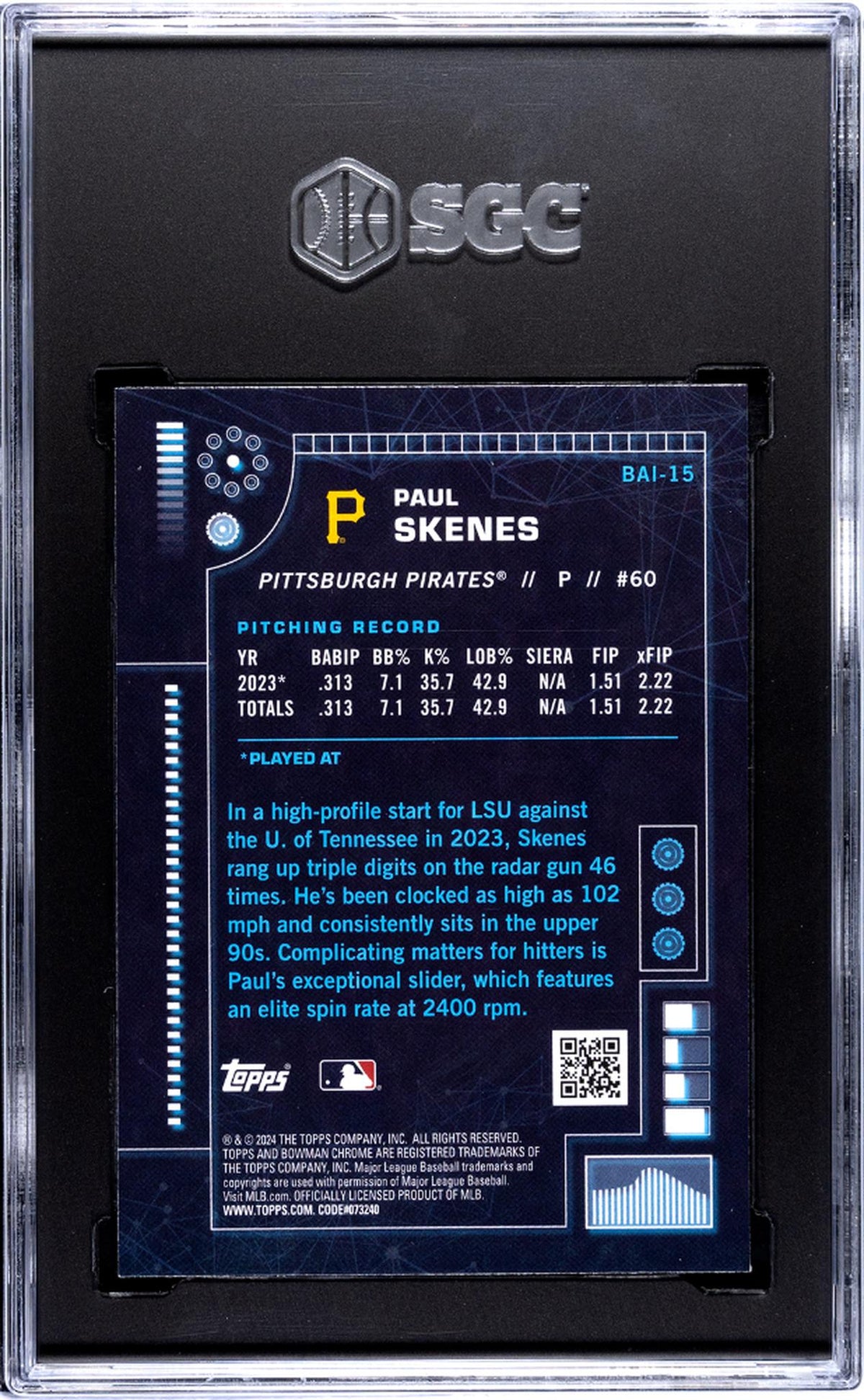 If you're a fan of Paul Skenes, the Pittsburgh Pirates, or if you're simply a collector who appreciates the value and beauty of high-quality sports cards, this is an opportunity you wouldn't want to miss. Add this gem to your collection and let it shine as a testament to your love for the game.
