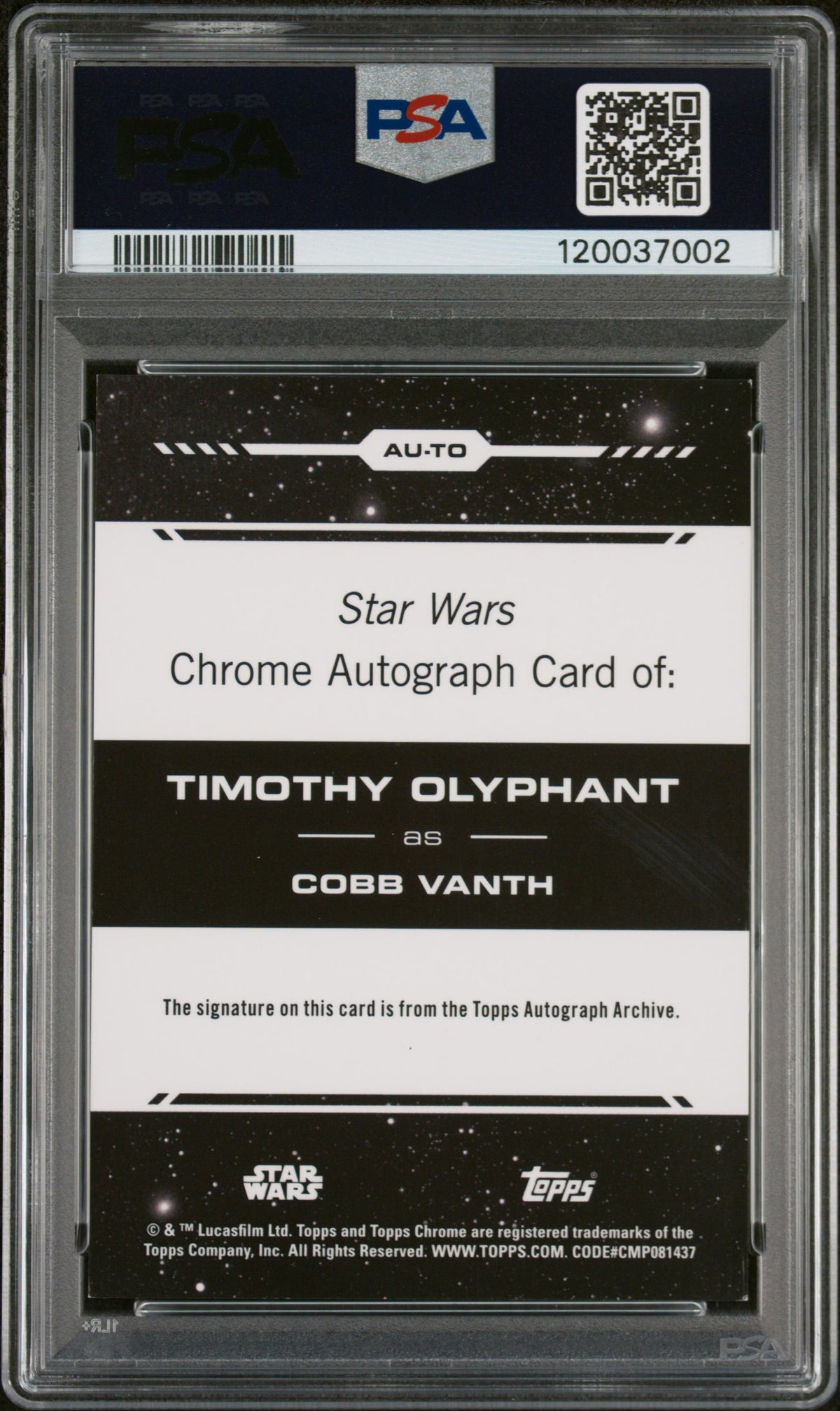 Immerse yourself in the world of Star Wars with this striking 2024 Topps Chrome AUTO card featuring the talented Timothy Olyphant, who gave life to the character of Cobb Vanth. This card is an absolute must-have for any serious sports card collector or Star Wars enthusiast. Manufactured by the illustrious brand Topps, this card comes with the guarantee of top-quality craftsmanship and attention to detail.