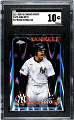 In summary, this 2024 Chrome USC1 Juan Soto RayWave card is a striking blend of sports history and collectible artistry. Adding this card to your collection means owning a piece of baseball history, a snapshot of Soto's career, and a shining example of Topps' craftsmanship. Don't miss out on the chance to own this remarkable piece of memorabilia.