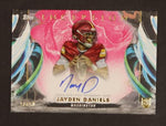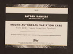 This extraordinary card features Jayden Daniels, a rising star in the world of football. The card is a part of the 'Rookie Autograph Variation' set, making it a truly unique collectible. The autograph adds a personal touch from Daniels himself, enhancing its value and desirability among collectors.