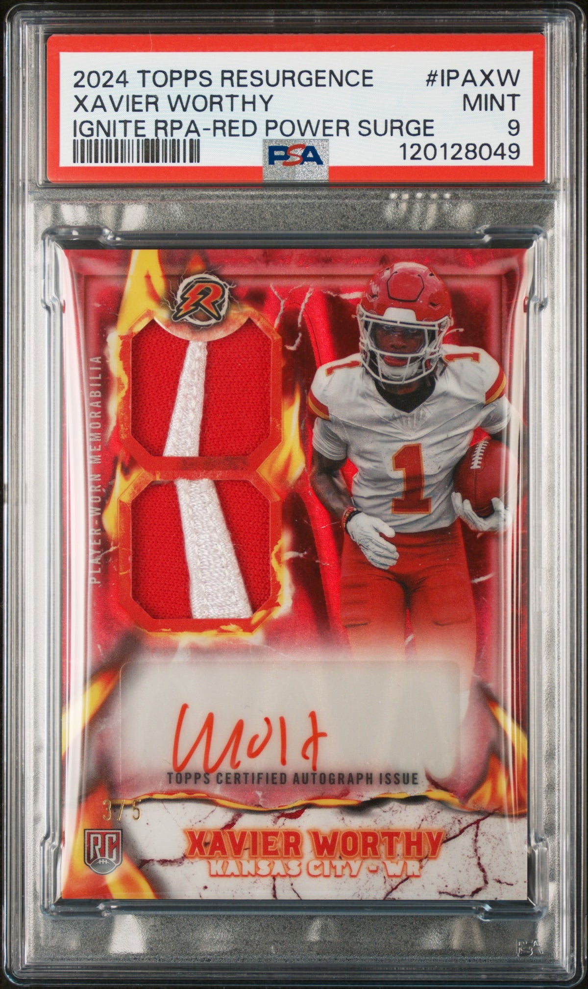 Unveil the sheer brilliance of this remarkable 2024 Topps Resurgence Xavier Worthy rookie card! Embodying the thrilling energy of football, this card is an undeniable jewel for any sporting memorabilia collection. Manufactured by the renowned Topps, this card is from the Ignite RPA-Red Power Surge insert set, a series celebrated for its exclusive and sought-after card selections.
