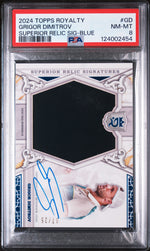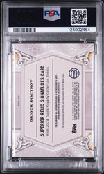 This card is part of the Superior Relic Signatures Insert Set, a collection revered by collectors and enthusiasts alike. The blue parallel design adds a unique touch, enhancing the card's aesthetic appeal. But what truly sets this card apart is its autograph - yes, it flaunts the signature of Grigor Dimitrov himself, providing a personal touch that fans will undoubtedly appreciate.