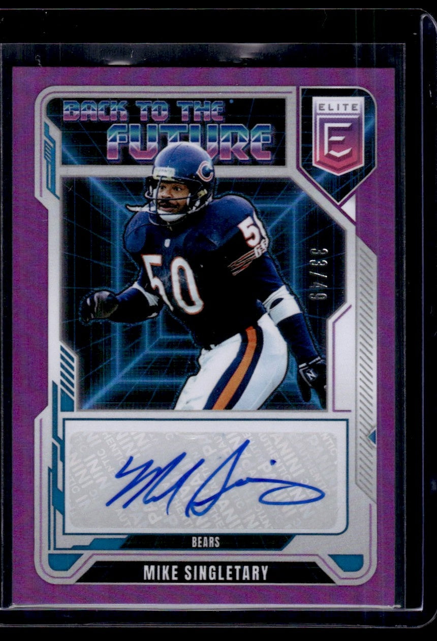 Behold the captivating 2023 Elite BFS-MSY Mike Singletary card from the esteemed manufacturer, Panini. This gem of a collectible hails from the 'Back to the Future' Elite Series, marking a significant milestone in the realm of football card collection. The card is a significant testament to Singletary's remarkable career with the NFL's Chicago Bears, offering an intimate connection to the player and the sport.