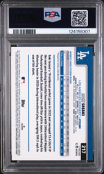 Behold the remarkable Roki Sasaki 2025 Topps Chrome Variation card - an absolute must-have for any true baseball card collector. With the card number 217, this is a standout piece from the Topps Chrome Variation set. Manufactured by the renowned Topps, this card is a testament to their unyielding commitment to quality and aesthetics. What makes this card even more desirable is the fact that it commemorates Roki Sasaki's rookie year with the Los Angeles Dodgers. Immortalizing his first strides in the world of baseball, this card captures a pivotal moment in Sasaki's career with great finesse. While the card is not autographed, it more than makes up for it with its distinct 'Variation' insert. This specific feature adds an extra layer of charm and uniqueness, making this card a standout among its peers. The card's condition is professionally graded as 'EX-MT' by PSA, one of the most trusted grading companies in the industry. With a numeric grade of 6, this card is in excellent condition and is perfect for display or as a valuable addition to any collection. This Roki Sasaki 2025 Topps Chrome card is not just a piece of memorabilia; it's a piece of baseball history. It's more than just a card - it's a symbol of Sasaki's promising beginnings, and a shining testament to his potential for greatness. Whether you're a seasoned collector or a new enthusiast, this Roki Sasaki Topps Chrome card is a must-have for its superior quality, unique design, and the valuable memories it represents. Grab this piece of baseball history and add a touch of sparkle to your collection.