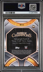 Step into the ring with this exceptional 2025 Topps Chrome #MOC-SA Steve Austin sports card! This magnificent piece is a true gem, guaranteed to catch the attention of any serious collector or WWE enthusiast. This card is a part of the renowned 'Marks of Champions' insert set, a collection that celebrates the champions of the wrestling world.