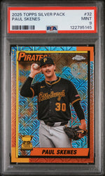 Introducing the extraordinary 2025 Topps Chrome #32 Paul Skenes baseball card, a must-have for any serious collector. This stunning card, manufactured by the renowned Topps, is part of the coveted Topps Silver Pack set, making it a remarkable addition to any sports card collection.