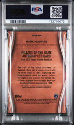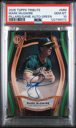 Step into the world of baseball majesty with this captivating 2025 Topps Tribute MM Mark McGwire card. This isn't just any sports card, it's a living tribute to one of the greatest players in the history of the Oakland Athletics and the MLB. As part of the coveted 'Pillars of the Game' insert set, this card celebrates a player who has truly left his mark on the game.