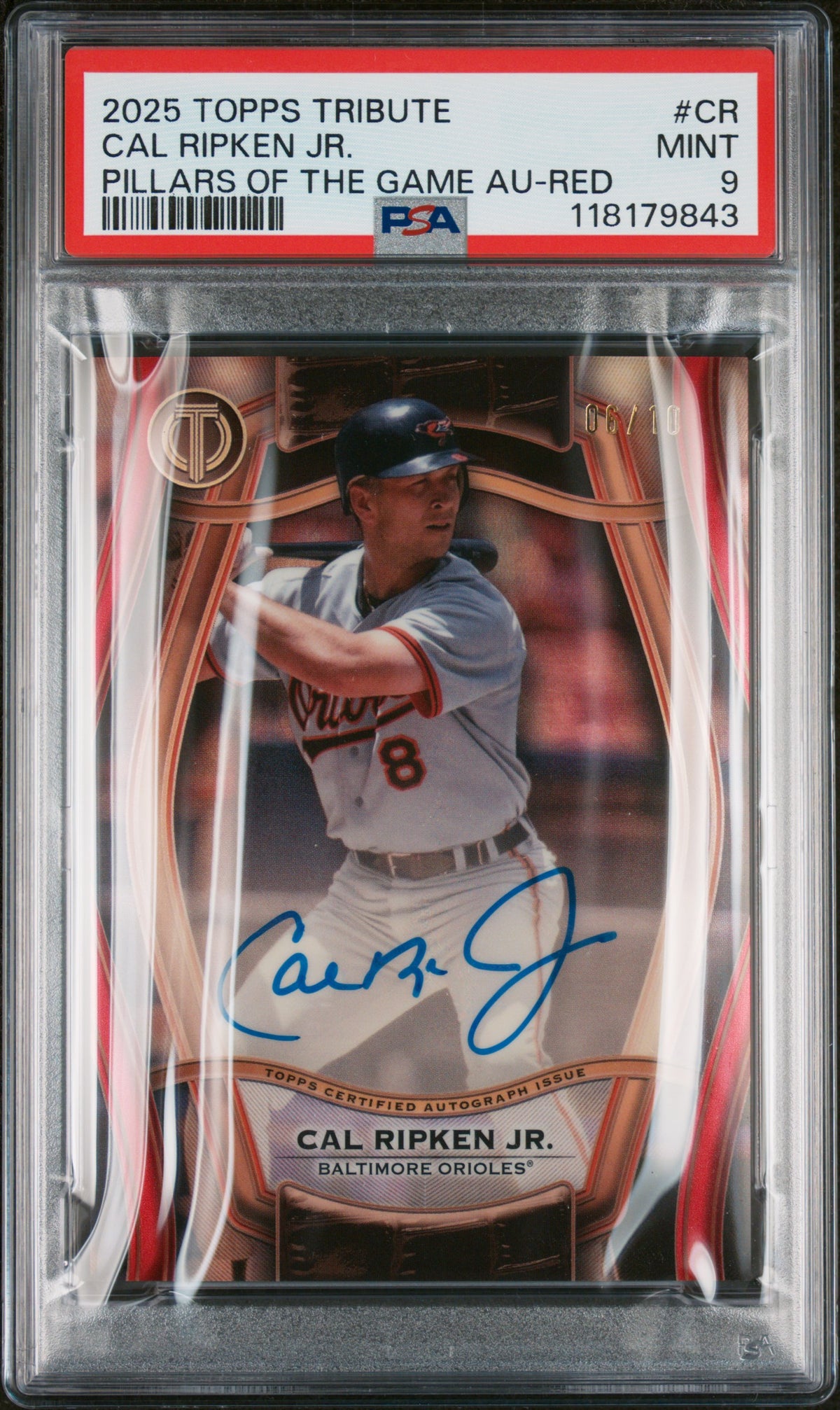 Immerse yourself in the world of baseball memorabilia with this astonishing 2025 Topps Tribute CR Cal Ripken Jr. Red 06/10 sports card. Crafted by the reputable Topps, this card is a part of the esteemed 'Pillars of the Game' set, a series that celebrates the legends of the sport.