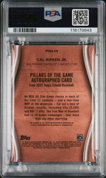 The card carries remarkable features such as the 'Pillars of the Game' insert set, the autograph, and the serial number which adds significant value to it. This Cal Ripken Jr. card is more than just a piece of cardboard, it is a memento of baseball history, a tribute to a legend, and a jewel in the crown of any sports card collection.