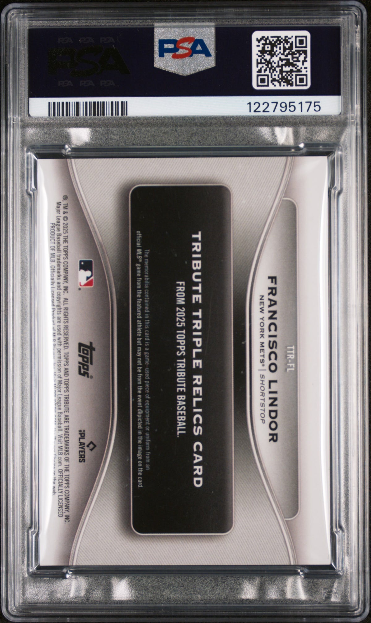 2025 Topps Tribute Tribute Triple Relics Francisco Lindor #TR-FL /199 PSA 9