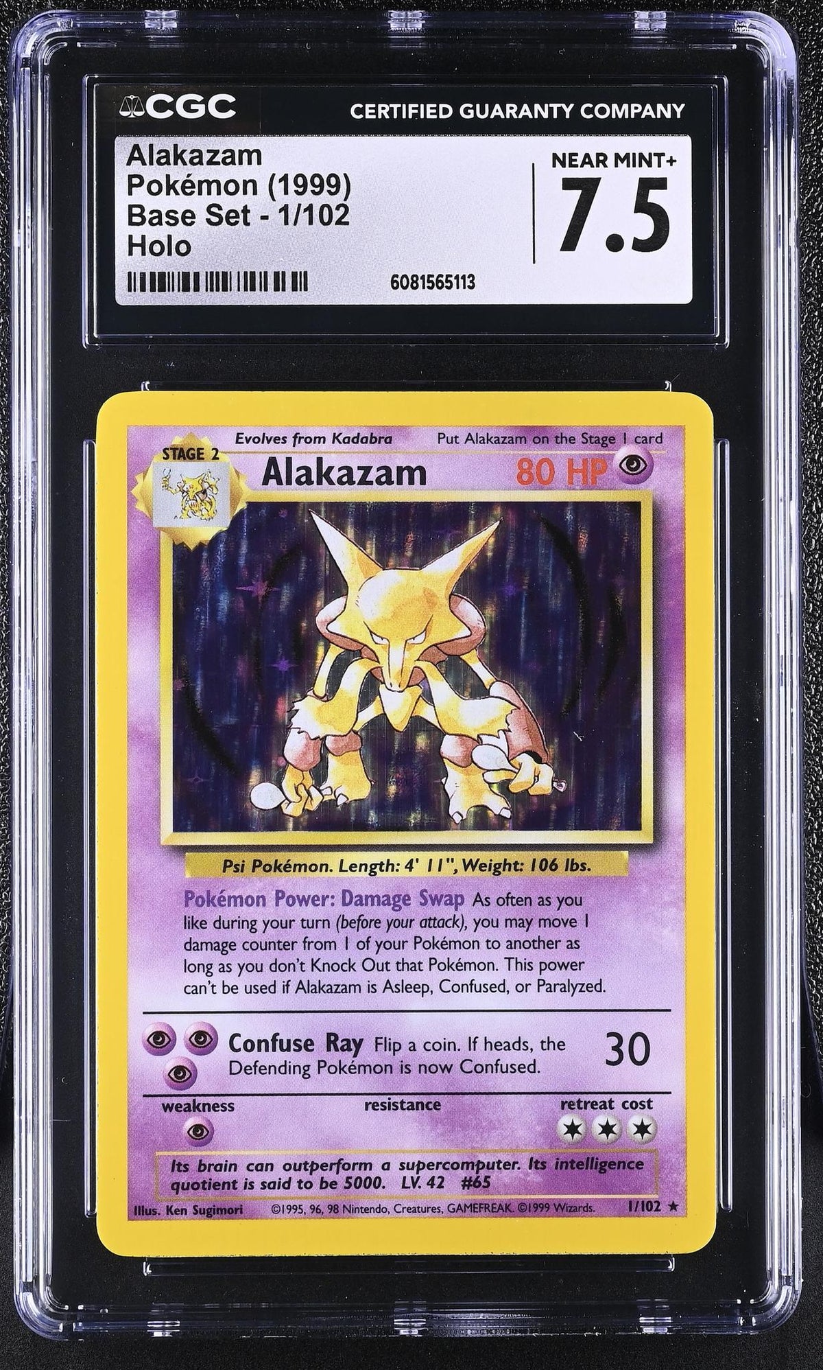 1999 Pokémon Base Set Alakazam #1/102 Holo CGC 7.5