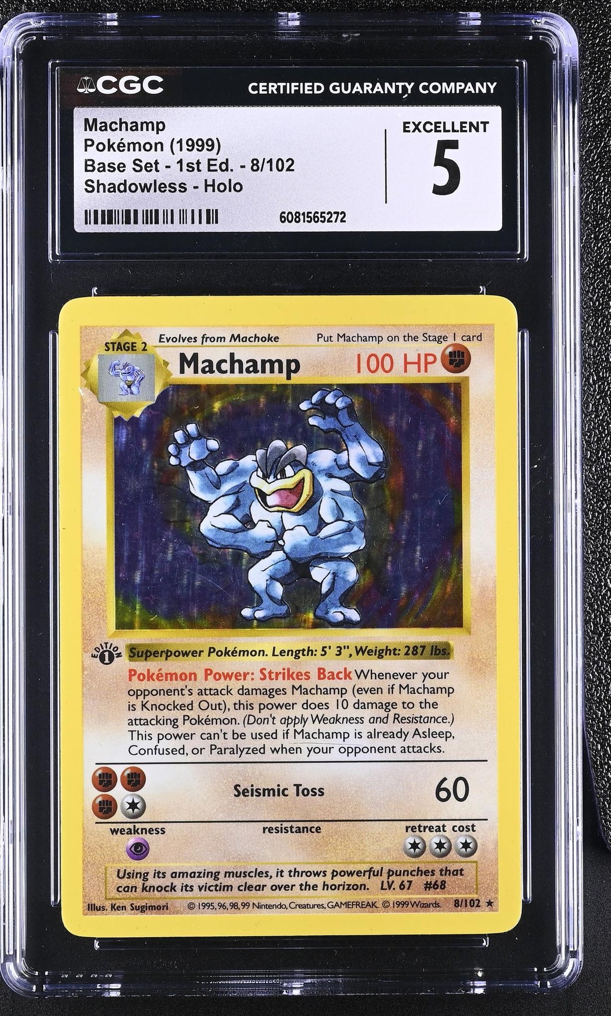 In conclusion, this 1999 Pokemon 8/102 Machamp CGC 5 card is a brilliant piece of nostalgia that seamlessly combines rarity and beauty. Its excellent condition and professional grading make it a trustworthy and worthwhile addition for both seasoned collectors and new enthusiasts alike.
