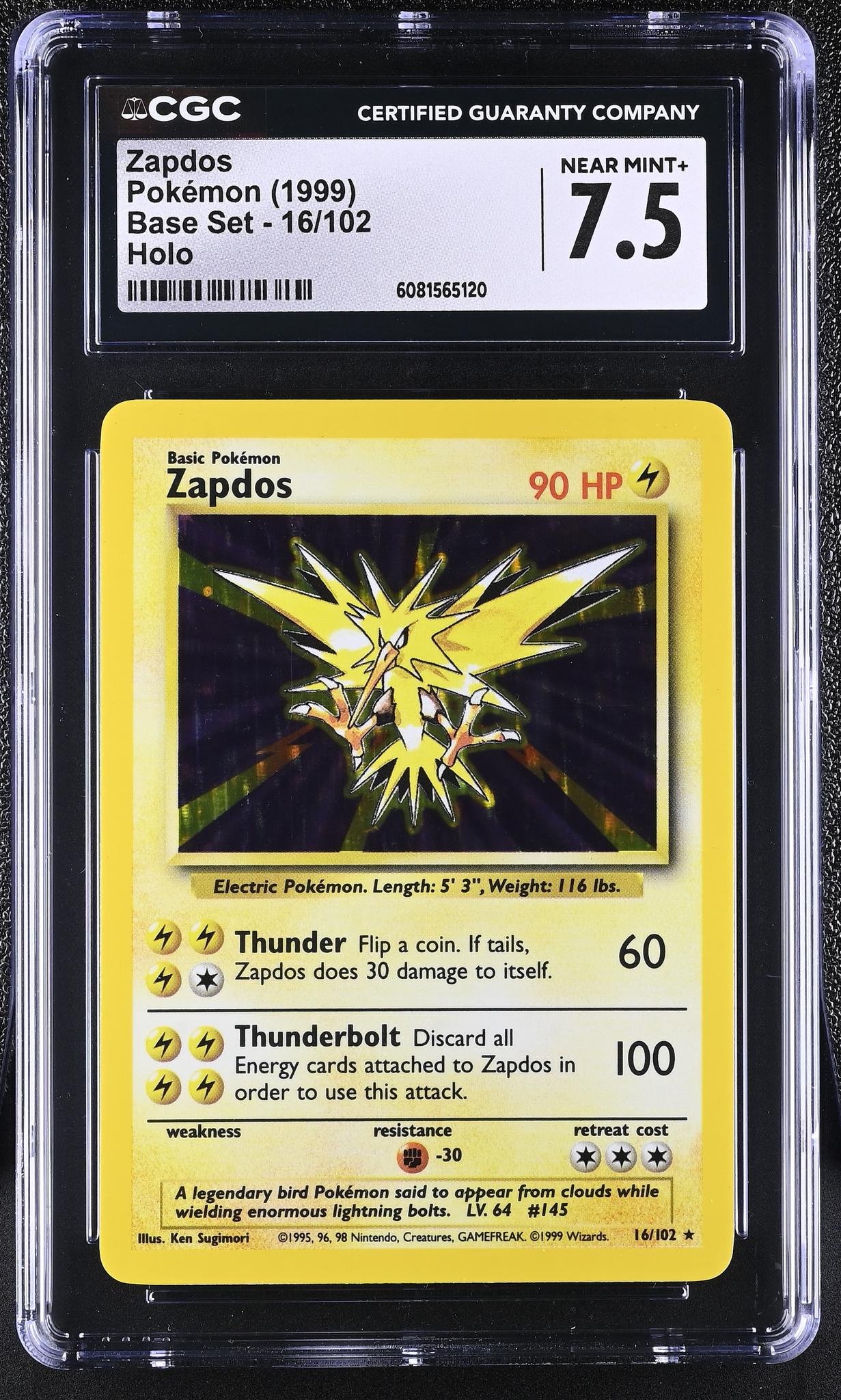 In summary, this 1999 Pokemon 16/102 Zapdos card, with its Holo finish and CGC grade of 7.5, is a must-have for any serious Pokemon collector or anyone who appreciates the artistry and nostalgia evoked by these cards. Don't miss out on the opportunity to own a piece of Pokemon history. This card will not only enhance your collection but also elevate your Pokemon card game.
