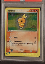 One of the most compelling features of this card is its holographic finish, which brings the fiery character of Torchic to life. The vivid colors and detailed artwork make it a real standout piece. Adding to its value, this card has been professionally graded by PSA, one of the most reputable grading companies, and has received a commendable grade of 8. The card is in 'NM-MT' (Near Mint-Mint) condition, indicating minimal signs of wear and tear and enhancing its desirability for collectors.