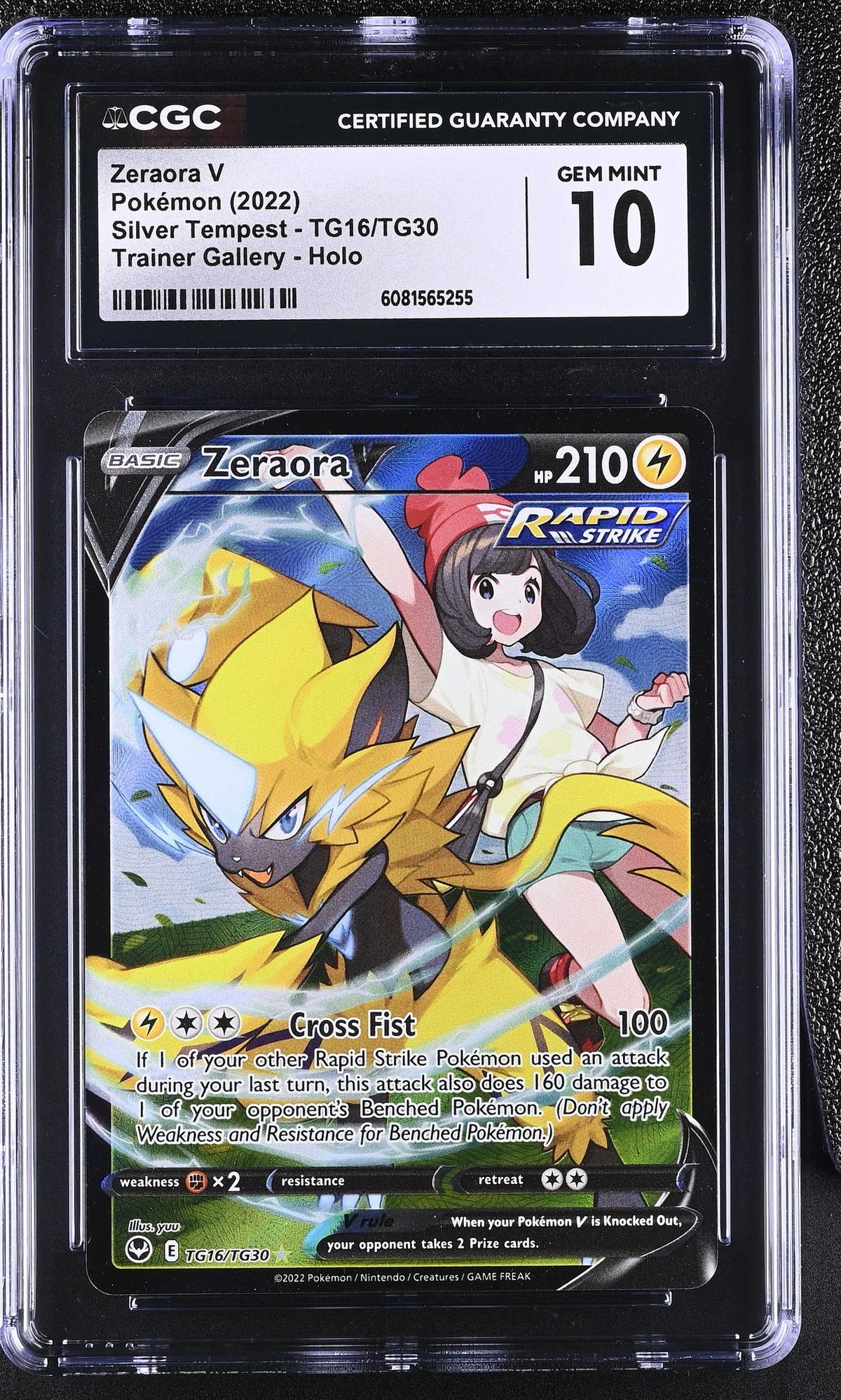 Whether you're a seasoned collector or a budding enthusiast, this Pokemon sports card, with its key features including the dazzling 'Zeraora V', the distinguished 'Silver Tempest', the captivating 'Trainer Gallery', and the impressive 'CGC 10' grading, offers an irresistible addition to any collection. Immerse yourself in the captivating world of Pokemon with this exquisite piece, a true testament to the enchanting realm of sports cards.