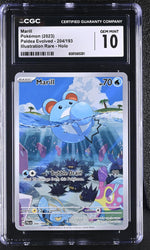 This card features Marill, a beloved character known for its captivating charm. The card number is 204/193, a unique detail that adds to its allure. A standout feature of this card is the Illustration Rare - Holo parallel. The holographic finish intensifies the artwork, making it a piece that instantly draws attention.