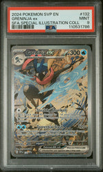 This particular Greninja card is not just any card; it has been professionally graded by PSA, one of the most respected grading companies in the industry, and has garnered a high score of 9. This translates to a 'Mint' condition, an indication that the card has been preserved in a near-perfect state, with no visible flaws.