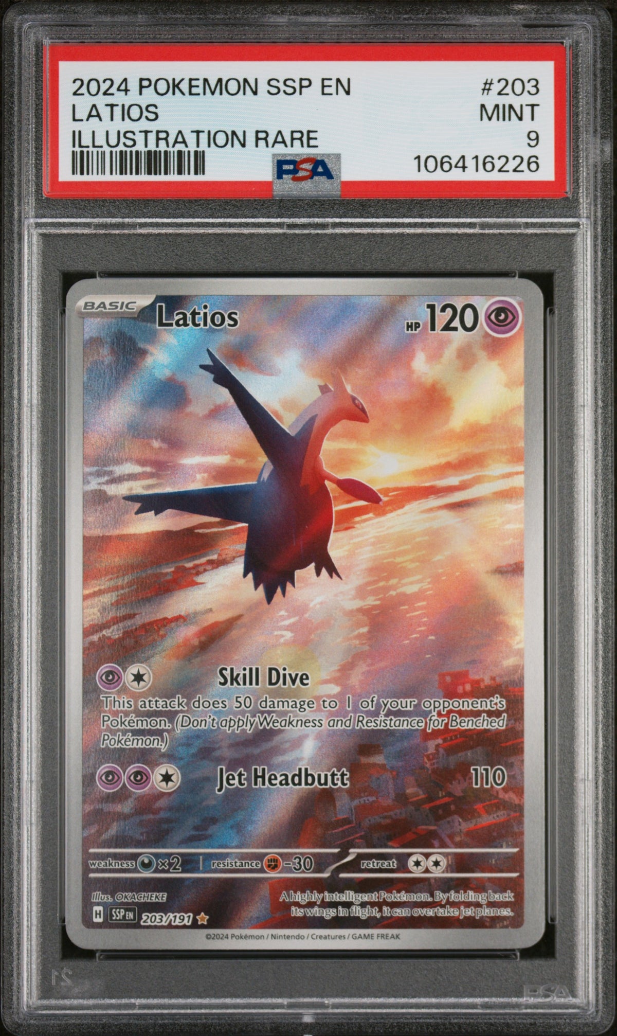 This card's key features include its 'Illustration Rare' status, 'PSA 9 Mint' grading, 'SSP EN Parallel' specification, and the 'Latios character'. These features make it more than just a collectible card; it's a testament to the enduring popularity and cultural impact of Pokemon.