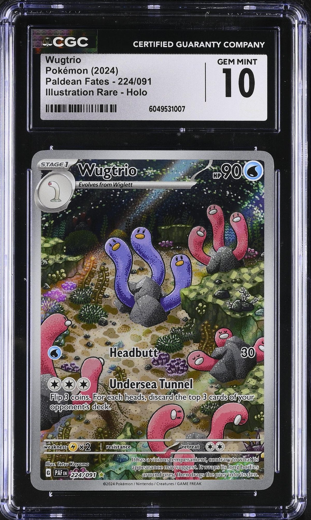 Despite not being a rookie card, nor containing an autograph or memorabilia, the sheer rarity and aesthetic appeal of this Wugtrio card make it a must-have! Its key features include its Illustration Rare status, Holo finish, belonging to the Paldean Fates set, and its 2024 edition - each aspect adding to its overall charm.