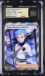 Immerse yourself in the captivating world of Pokemon with this incredibly rare and highly sought-after card - "Team Rocket's Archer" from the ultra-exclusive 'Destined Rivals' set. This card, numbered 223/182, is an absolute gem for collectors and fans alike. Made even more desirable by its 'Ultra Rare - Holo' parallel status, this card gleams with a holographic finish that catches the eye and captivates the imagination.