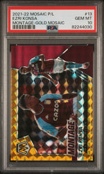 Introducing the spectacular '2021 Panini Mosaic Premier League Montage Gold 1/10 Ezri Konsa PSA 10'! This stunning card, number 13 in the series, is a must-have for any serious collector. The card brand, 'Panini Mosaic Premier League Montage', is renowned for its exceptional quality and attention to detail.