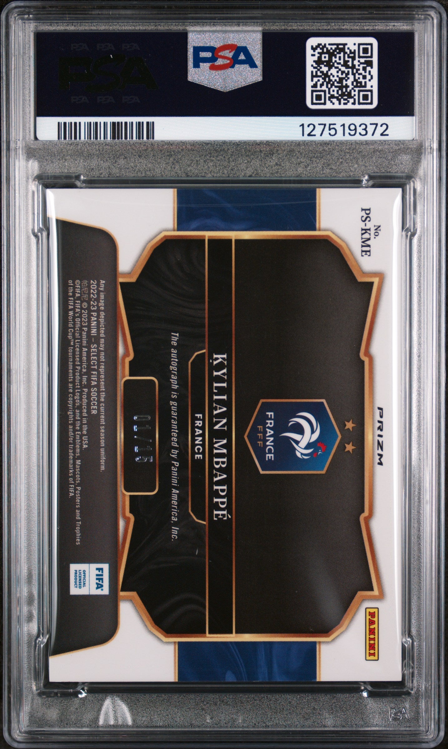 Whether you're a dedicated fan of FIFA, an admirer of France's national team, or a collector with an eye for valuable and unique sports cards, this Kylian Mbappe autographed card is a must-have. Its key features - the autograph, the Tie-Dye parallel, the limited serial number, and the high PSA grade - make it a standout piece. This card is more than just a collectible, it's a celebration of soccer and one of its brightest stars, Kylian Mbappe.