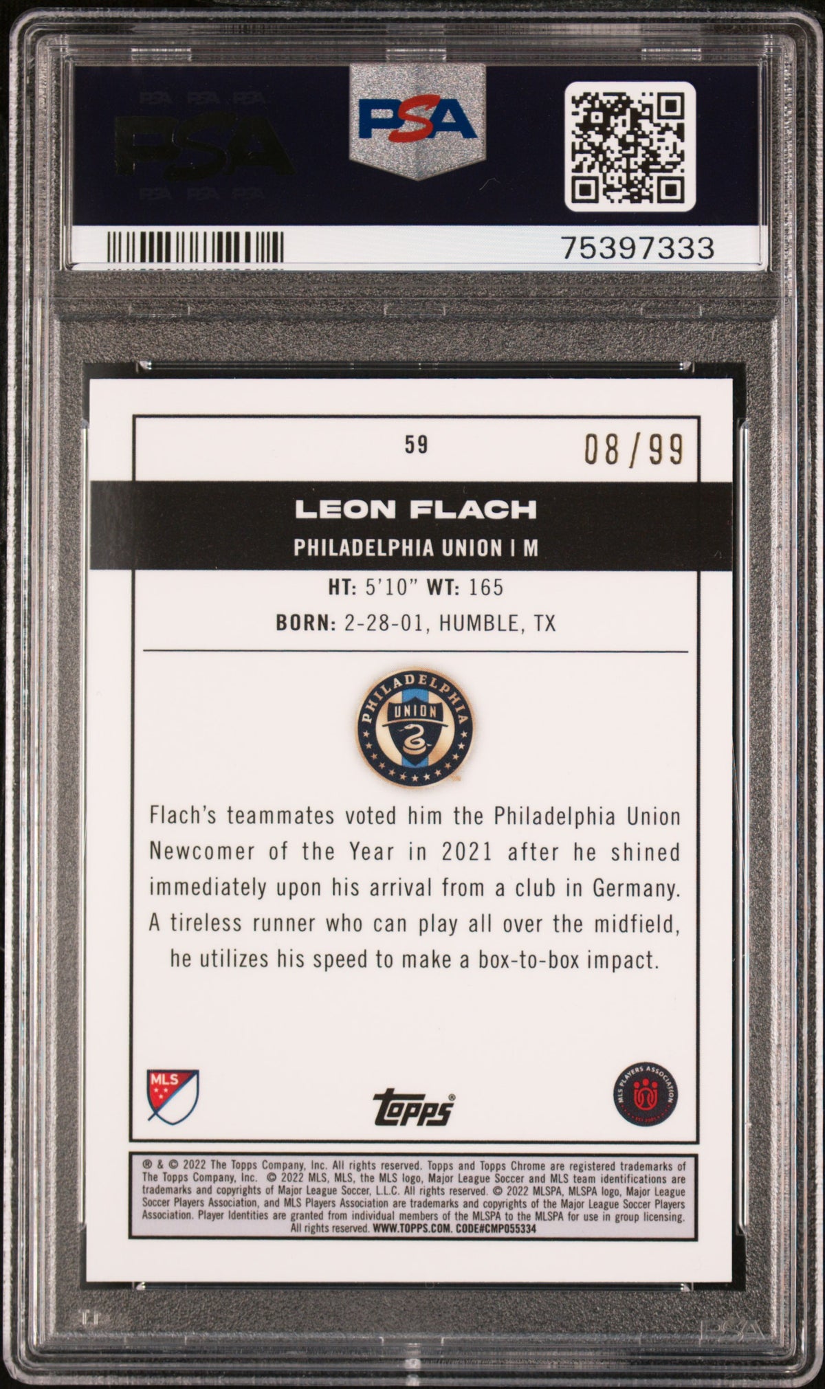 Leon Flach, the talent depicted on this card, is a promising player for the Philadelphia Union in the MLS league. As this is Flach's rookie card, it is a tangible testament to his early career and potential, making it a must-have for fans and collectors alike.