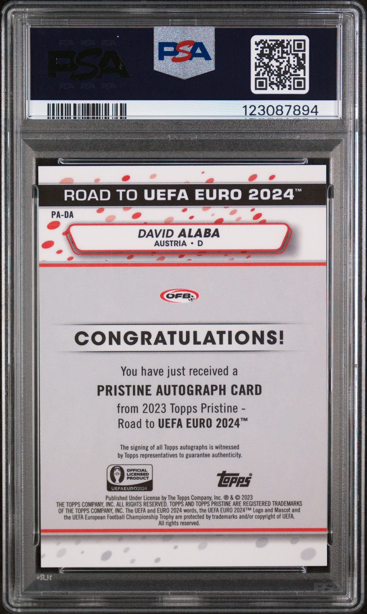 2023 Topps Pristine Road To UEFA Euro 2024 Pristine Autographs David Alaba #PADA PSA 10
