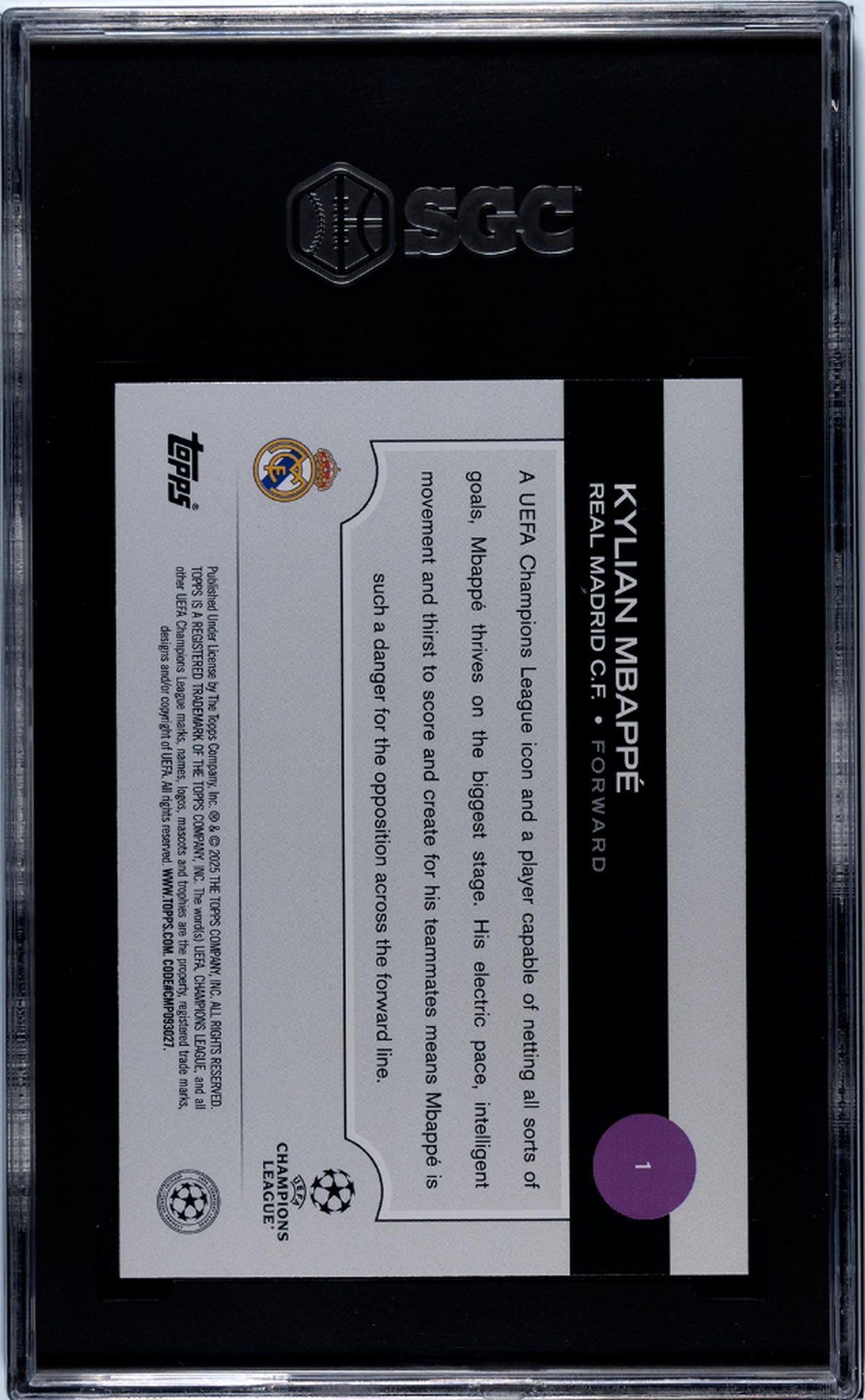 Dive into the world of sports memorabilia with this magnificent 2024-25 Topps #1 Kylian Mbappe card. This gem is part of the sought-after UEFA Club Competitions set, a must-have for any serious collector or true football enthusiast.