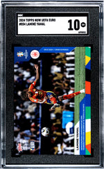 The card pays tribute to Yamal's invaluable contribution to his team, Spain, in the UEFA Euro league. His dynamic skills and youthful vigor have been superbly captured in this card, making it a coveted item for any soccer enthusiast or sports card collector.