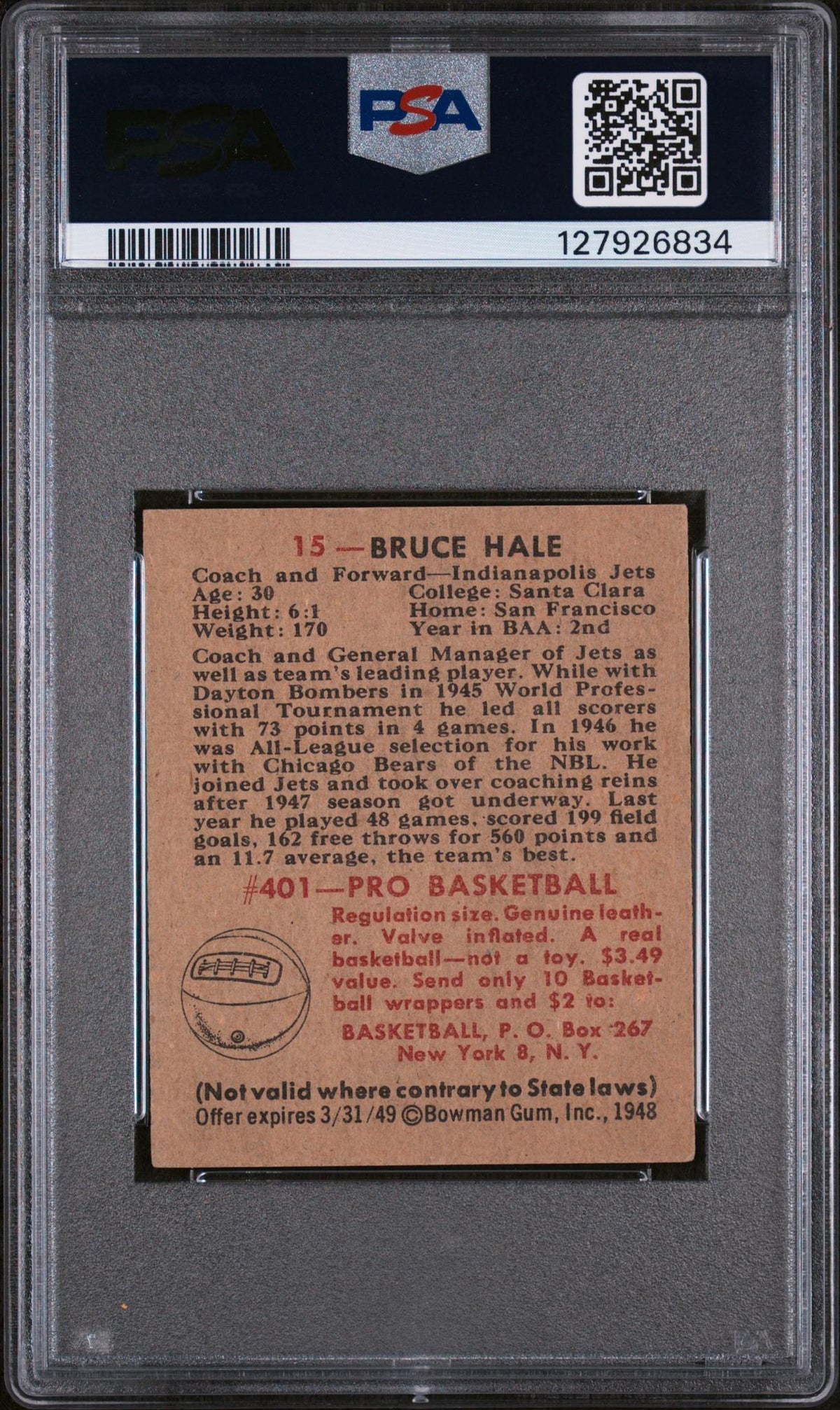 Enhance your collection with this outstanding piece of sports memorabilia. Don't miss out on owning a piece of basketball history with the 1948 Bowman #15 Bruce Hale card.