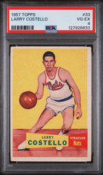 The key features of this card include its 1957 Topps designation, the featuring of Larry Costello, its association with the Syracuse Nats, the PSA grading, and the VG-EX 4 condition. Each of these aspects makes this card an irresistible collectible for sports enthusiasts.